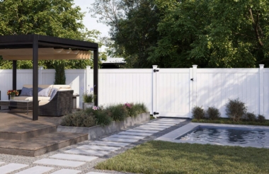 This full privacy fence, available exclusively at Lowe’s, features decorative top and bottom rails so you don’t have to sacrifice style. The easy to assemble panels are the perfect choice for those who want personalized style, incredible durability and minimal maintenance.